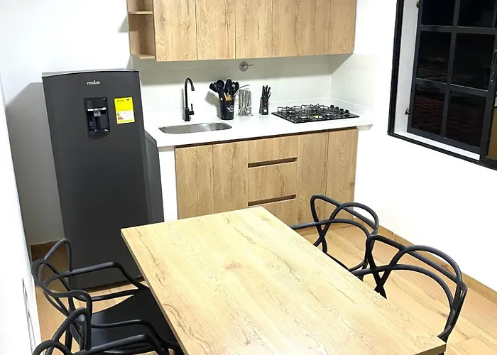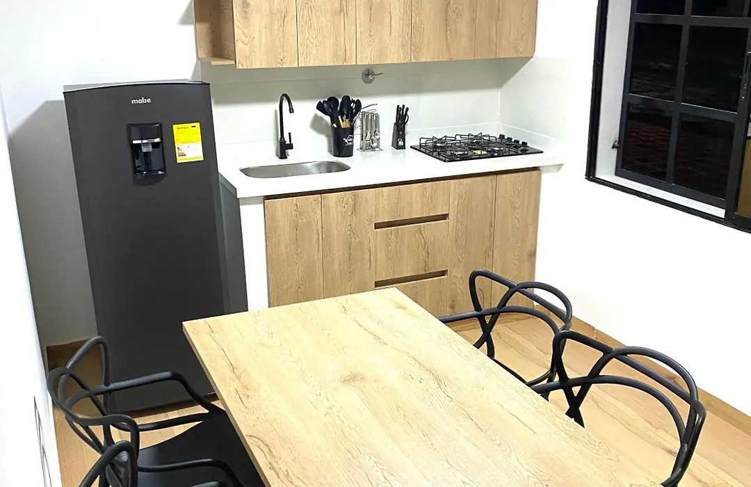 В числе удобств на оборудованной кухне есть холодильник и кухонная утварь. В паре минут ходьбы от этого места находится ближайшая автобусная остановка — Fundacion universitaria luis amigo.